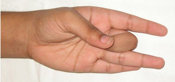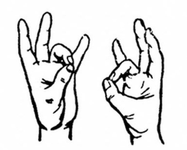 Để thực hiện được động tác này rất đơn giản, bạn chỉ việc gập ngón áp út lại rồi dùng ngón tay cái nhấn vào đốt thứ hai của ngón áp út.