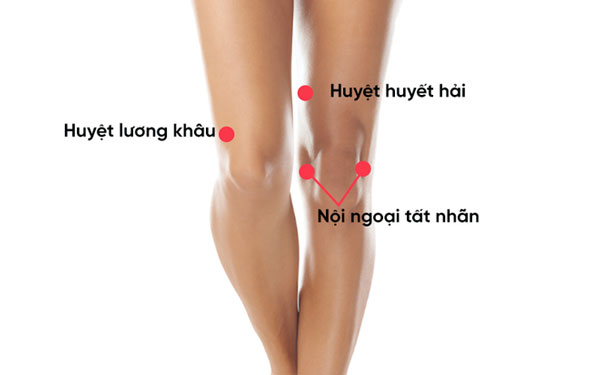 – Huyệt Lương khâu (má ngoài đùi phía trên đầu gối)