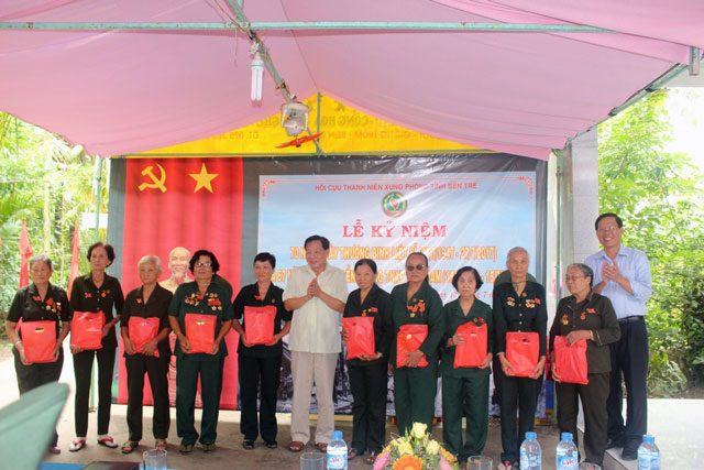 Đến dự buổi lễ có các đồng chí: Trương Vĩnh Trọng, nguyên Ủy viên Bộ Chính trị, nguyên Phó Thủ tướng Chính phủ; Trần Văn Mãnh, nguyên Tổng đội trưởng Tổng đội TNXP Giải phóng miền Nam, Phó Chủ tịch Hội Cựu TNXP Việt Nam; Huỳnh Văn Be, nguyên Ủy viên Trung ương Đảng, mguyên Bí thư Tỉnh ủy Bến Tre; Phan Văn Mãi, Ủy viên Ban Chấp hành Trung ương Đảng, Phó Bí thư Thường trực Tỉnh ủy; Trần Công Ngữ, nguyên Ủy viên Ban Thường vụ Tỉnh ủy, Phó Chủ tịch Hội Bảo trợ Bệnh nhân nghèo – Người tàn tật và Trẻ em mồ côi tỉnh Bến Tre; Đỗ Thị Thu Thảo, Tỉnh ủy viên, Phó Chủ tịch Hội đồng nhân dân tỉnh; Võ Văn Phê, Tỉnh ủy viên, Bí thư Huyện ủy Giồng Trôm; Nguyễn Thị Hồng Nhung. Tỉnh ủy viên, Bí thư Tỉnh đoàn; Phạm Hữu Thừa – UV.BCH TW Hội Cựu TNXP Việt Nam, Chủ tịch Hội Cựu TNXP tỉnh; đại diện lãnh đạo các ban, ngành, đoàn thể tỉnh, Ban Thường vụ Hội Cựu TNXP tỉnh; BTV Tỉnh tội, Ban Thường vụ Tỉnh đoàn;đảng viên tiêu biểu được nhận huy hiệu 40, 45, 50, 60 năm tuổi Đảng vào đợt 19/5/2017 là cán bộ, hội viên cựu TNXP; Chủ tịch, Phó Chủ tịch Hội Cựu TNXP các huyện, thành phố; Bí thư, Phó Bí thư các Huyện, Thành đoàn; lãnh đạo Đảng ủy, HĐND, UBND, UBMTTQ Việt Nam xã Lương Quới, huyện Giồng Trôm và xã Tường Đa, huyện Châu Thành.