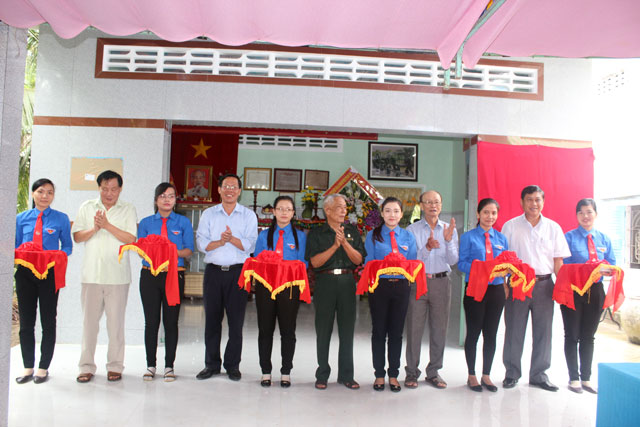 Đại biểu lãnh đạo cắt băng khánh thành Nhà tưởng niệm Anh hùng liệt sỹ Lê Trung Kiên