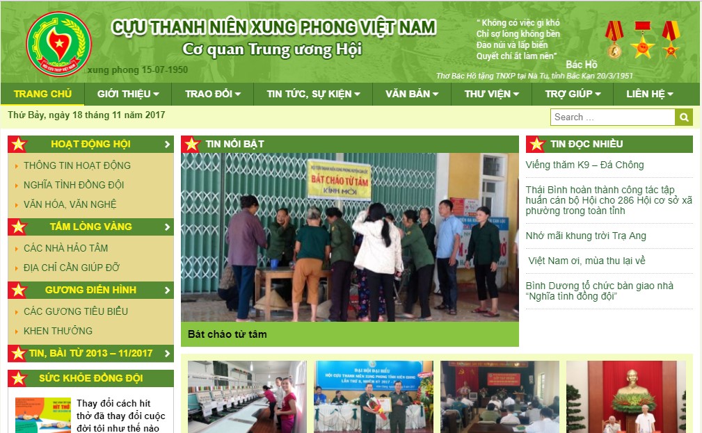 Website Hội Cựu Thanh niên xung phong (TNXP) Việt Nam (cuutnxpvietnam.org.vn) được xây dựng để cung cấp và cập nhật thông tin về: Lịch sử truyền thống của Lực lượng TNXP Việt Nam; hoạt động của Hội Cựu TNXP Việt Nam và Hội Cựu TNXP ở địa phương nhằm động viên cán bộ, hội viên giúp đỡ hỗ trợ nhau trong cuộc sống, xóa đói, giảm nghèo, triển khai các hoạt động nghĩa tình đồng đội; bảo vệ quyền và lợi ích hợp pháp của hội viên; tham gia giải quyết chế độ chính sách đối với TNXP đã hoàn thành nhiệm vụ trong kháng chiến theo quy định của pháp luật; phối hợp với Đoàn TNCS Hồ Chí Minh trong sự nghiệp giáo dục truyền thống cách mạng, truyền thống TNXP cho thế hệ trẻ nhằm khơi dậy, phát huy truyền thống TNXP trong kháng chiến vào sự nghiệp đổi mới, xây dựng và bảo vệ Tổ quốc…