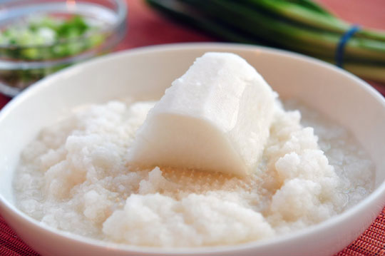 Củ cải trắng rửa sạch, cạo vỏ, cắt nhỏ rồi nấu với gạo thành cháo, sử dụng hằng ngày.
