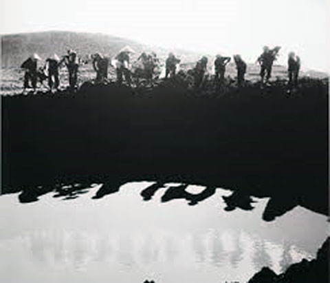 Tiểu đội Võ Thị Tần đang lấp hố bom